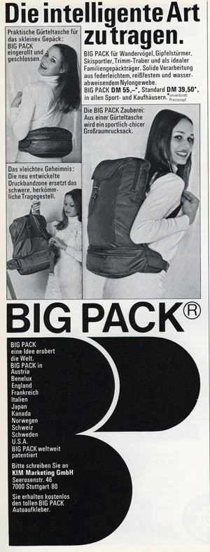 BIG PACK 55 нем. марок, стандарт 39,50 нем. марок, во всех спортивных магазинах и универмагах.