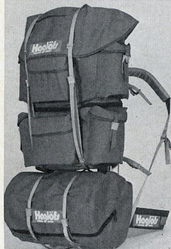 Экспедиционный рюкзак «Аляска». Состоит из двух частей (промежуточное дно можно удалить); шесть накладных карманов, один карман в большой верхней створке; снегозащита в мешке и на карманах; установлен на «гренландскую рамку»; общий объем 90 литров, вес 2200 г. Производитель: Haglöfs/ Tagoss.
