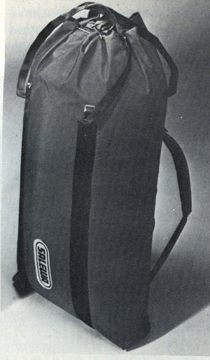 Тщательно разработанные дорожная сумка из прочного нейлона красного цвета. Благодаря снимающемуся ремню в этом предмете сочетаются качества мешка для вещей и рюкзака. Лямки - из крепкой ленты, тщательно закрепленной. Сумка используется как рюкзак для «скалолазания по большим стенам». Высота 90 см., дно 47х30. Цена: 119.