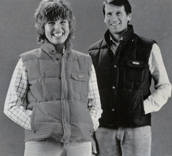 Пуховым жилетам сегодня отдают предпочтение не только альпинисты, но и лыжники, путешественники и велосипедисты. Модно-функциональный дизайн и способствующая дыханию хлопково-меланжевая ткань в цвете: красный, песочный и тёмно-синий, позволяет пуховому жилету также являться эффектной «одеждой на выход» (цена: 99,— ДМ).