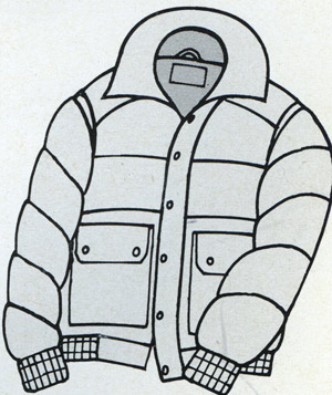 Пуховик отвечает самым высоким требованиям, которые предъявляют горы Западных Альп и экспедиционные восхождения. Пуховый наполнитель, в 650 грамм, позволяет куртке выполнять цель её предназначения даже при экстремальных погодных условиях. Цвет: морской волны с красной отделкой (цена: 298,-ДМ).