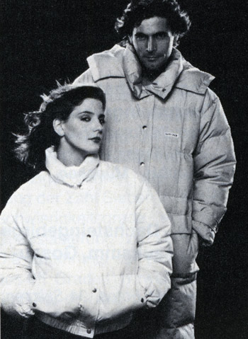 Happy Pack – пуховики отличается не только современной функциональностью, но и оптимальной фиксацией высококачественного, китайского пуха, сохраняющего тело в тепле. Пуховики представляют собой так сказать климатическую установку, которая может быть использована для ношения в свободное время или повседневной жизни, а также, во время занятий спортом. Пуховые жилеты «Jet» для женщин и пуховые пальто «Artic» для мужчин – два новых продукта нашей фирмы. Цена: около 239 марок (женские жилеты) и около 300 (мужские пальто).