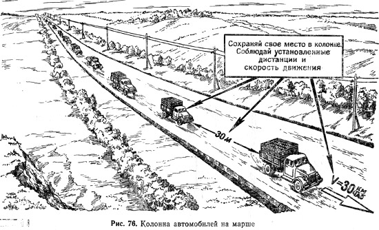 Общий вид автомобильной колонны на марше показан на рис. 76.