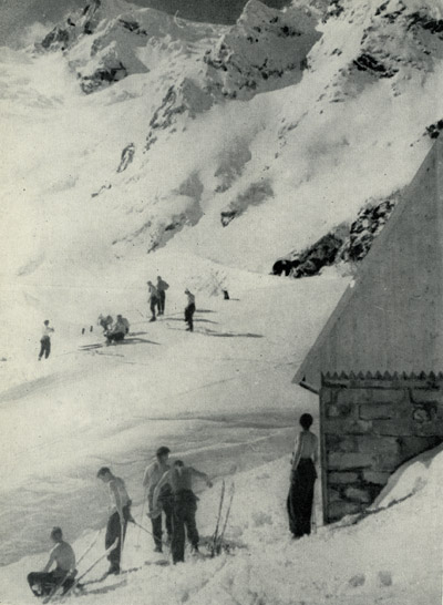 Альпинисты направляются из лагеря к месту горнолыжных занятий