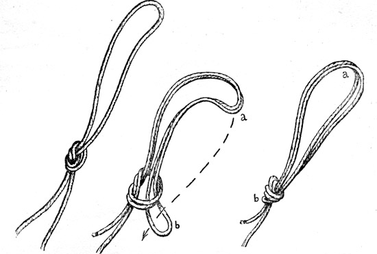 Очень распространенную и грубую ошибку допускают те проводники или туристы, которые для сокращения расстояния между членами группы свободно обматывают петли каната вокруг груди, не укладывая петли вплотную друг к другу так, чтобы они не могли соскользнуть, и не закрепляя последнюю петлю концом каната или узлом на идущем далее канате. При падении как на скалах, так и на льду такое свободное укладывание петель не раз вызывало смерть через удушение, и таким образом погибло двое из лучших альпинистов.