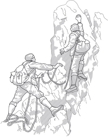 Точки опоры (захваты и уступы) нужно предварительно очищать от мелких камней, земли и т. п. При очистке соблюдать осторожность, чтобы сбрасываемые камни не поранили спутников. Слабо сидящие опоры с теми же предосторожностями удаляют; если же оставляют на месте, то предупреждают об их опасности спутников.