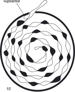 Нетрудно заметить, что всем зажигалкам с разделенными лентами и фитилями был свойствен недостаток – курильщику каждый раз приходилось обрывать использованный конец ленты. И вот в 1899 году А. Георг из Берлина предложил конструкцию, в которой лента с перфорацией перематывалась с бобины на бобину наподобие кинопленки (пат. № 105751, рис. 8). В перфорацию на ленте входили зубчики колесика, протягивающего ее при открывании крышки зажигалки.