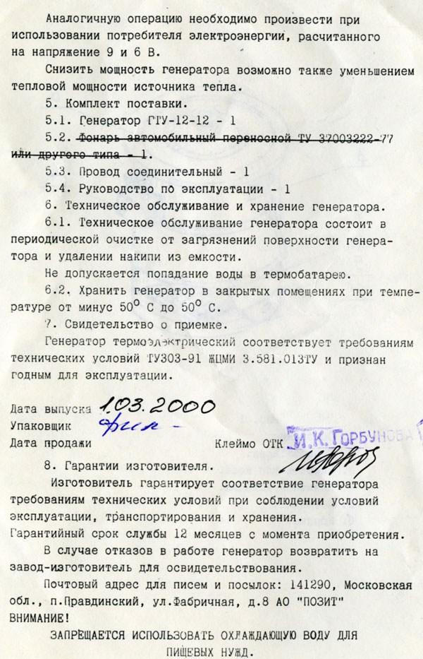 Генераторы термоэлектрические