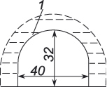 Рис. 11. Форма устья в виде арки. 1 — бумага.
