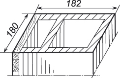Положив на перекрытие шестка брусок, поверх его выкладывают стенки чела, затем перекрывают его с двух сторон, положив глиняные пластины: с левой стороны шириной в 25 сантиметров и с правой — в 40 сантиметров. Между ними оставляется пространство не менее 25 сантиметров (рис. 18). Слева на пластинку опирают вертикальную стенку толщиной в 10 сантиметров; она отгораживает дымоход для самоварника, который должен иметь ширину 15 сантиметров. С правой стороны пластину кладут для того, чтобы уложить на нее глиняный козырек толщиной и высотой в 15 сантиметров. В результате образуется как бы коробка, которая предохраняет шесток от попадания на него из трубы сажи (рис. 19).